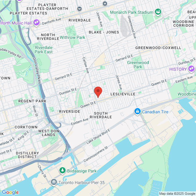 If driving, there is metered parking on Carlaw, Queen St E, Colgate Ave. Free parking can be found on Verral Ave, Boston Ave, some parts of Colgate Ave and Natalie Pl. There is a green P parking lot at the SE corner of Dundas St E/Carlaw (entrance off of Dundas) . This is a vibrant and busy area, so please give yourself extra time to find parking.